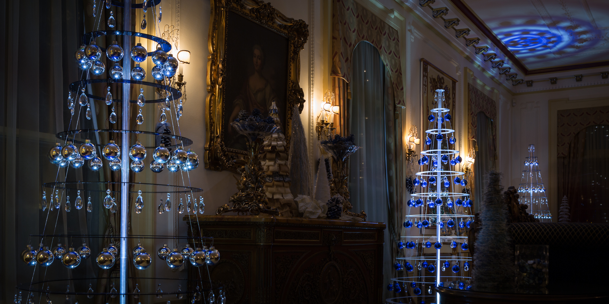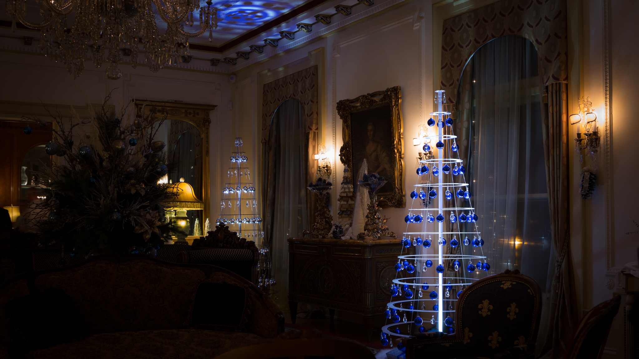 “I was recently granted the opportunity to display three of my Grandpa’s trees at the Governor’s Mansion. The tree is next to a chandelier from the White House, gifted to the Governor’s Mansion by the White House where the chandelier resided under many presidents. Because of the architectural integrity we were unable to hang the tree from the ceiling. We developed a stand for the tree for this reason, which will be available next year to the public.”